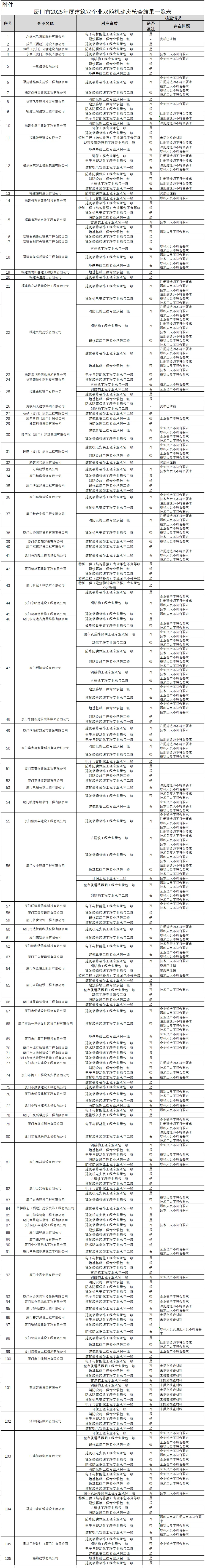 附件:厦门市2025年度建筑业企业双随机动态核查结果一览表