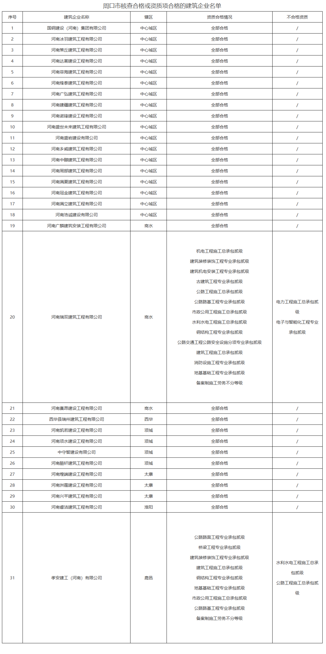 周口市住房和城乡建设局发布关于周口市建筑业企业资质动态核查结果公示。