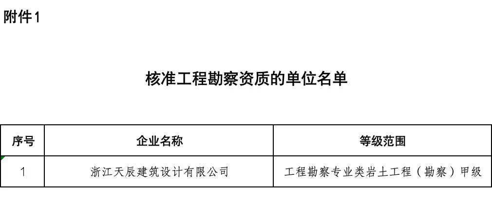附件:1.核准工程勘察资质的单位名单