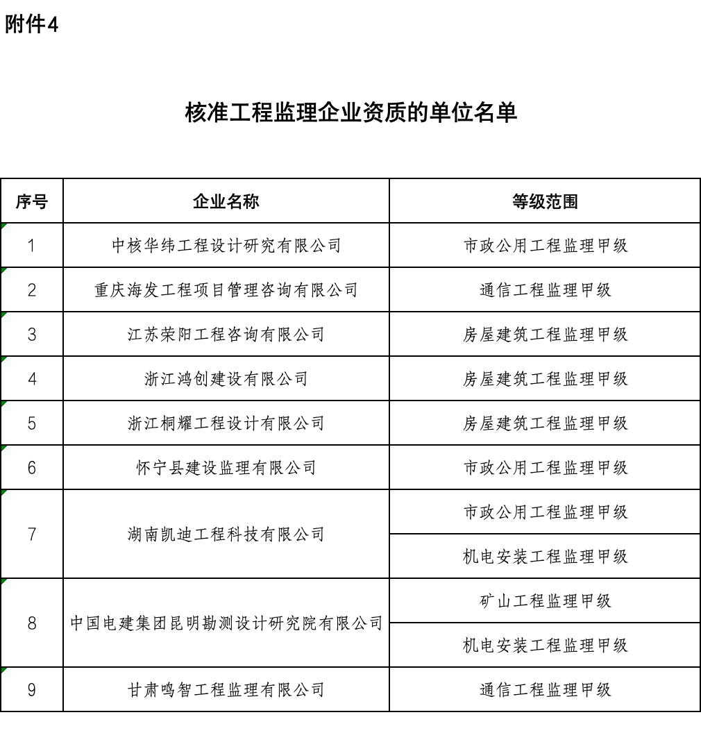 4.核准工程监理企业资质的单位名单