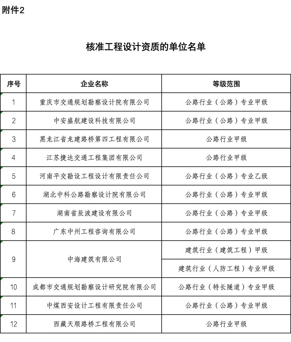 2.核准工程设计资质的单位名单