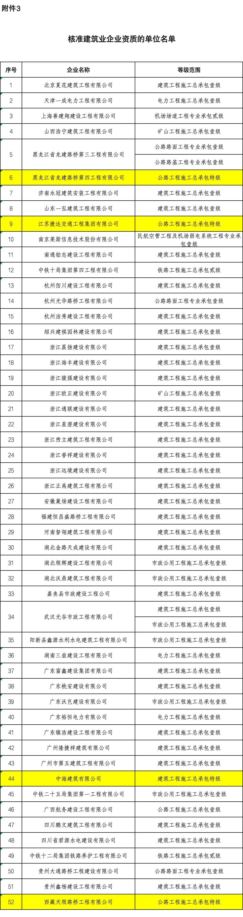 3.核准建筑业企业资质的单位名单