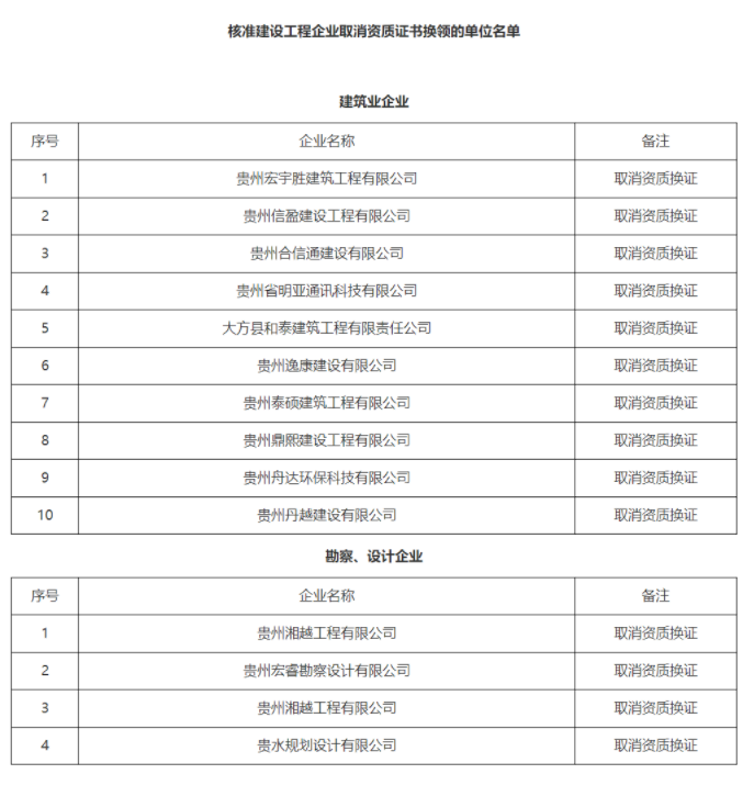 贵州省住房和城乡建设厅发布关于核准2025年度第十四批建设工程企业取消资质证书换领名单的公告。
