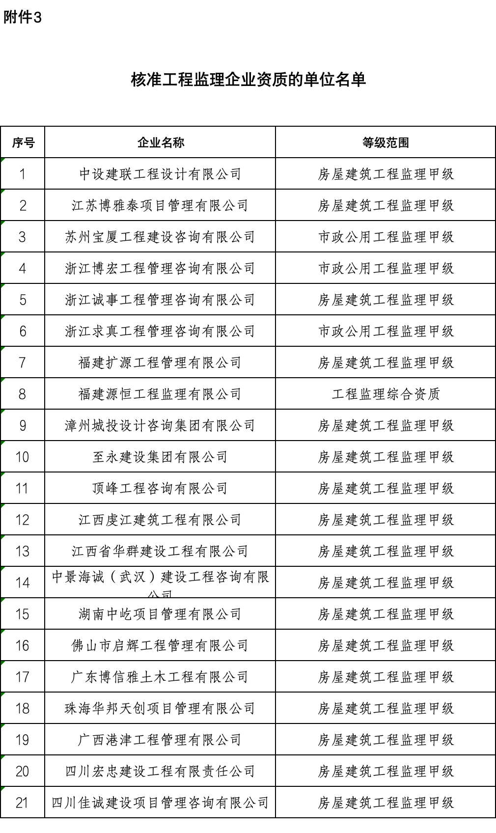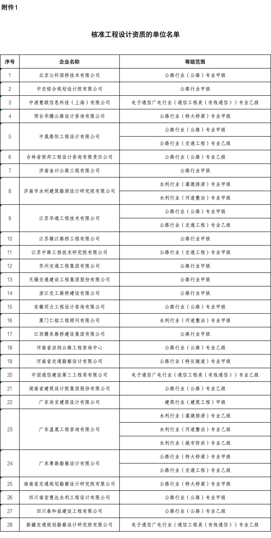 根据《中华人民共和国建筑法》及有关建设工程企业资质管理规定,现将我部核准的工程设计资质、建筑业企业资质、工程监理企业资质的单位名单(2025年度第一批)予以公布。未予核准的单位可登录住房城乡建设部政务服务门户,点击“申请事项办理进度查询(受理发证信息查询)”栏目查询原因。