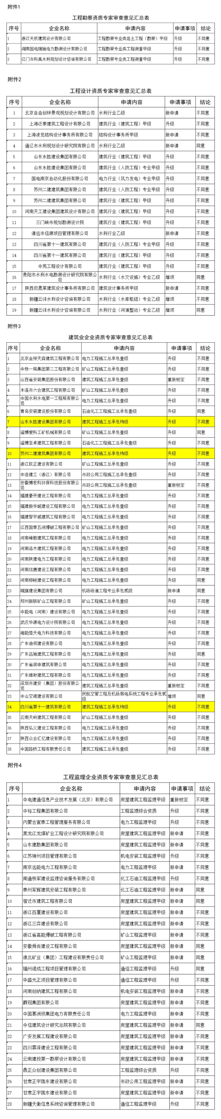 予以公示3项工程勘察资质、19项工程设计资质、38项建筑业企业资质、28项工程监理企业资质专家审查意见。