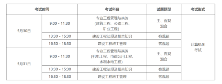 注:1.《专业工程管理与实务》科目分为建筑工程、公路工程、矿业工程、机电工程、市政公用工程、水利水电工程6个专业,报考人员可根据实际工作需要选报其一。