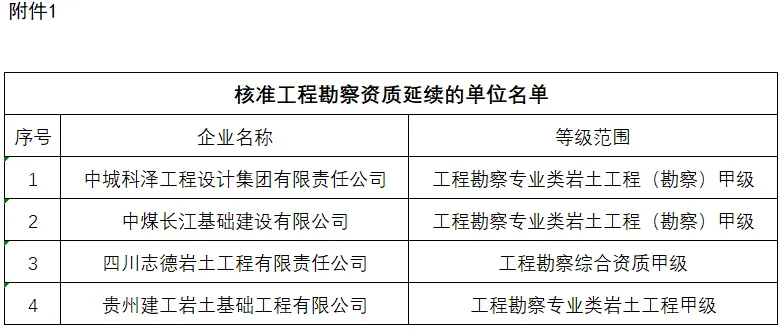 1.核准工程勘察资质延续的单位名单